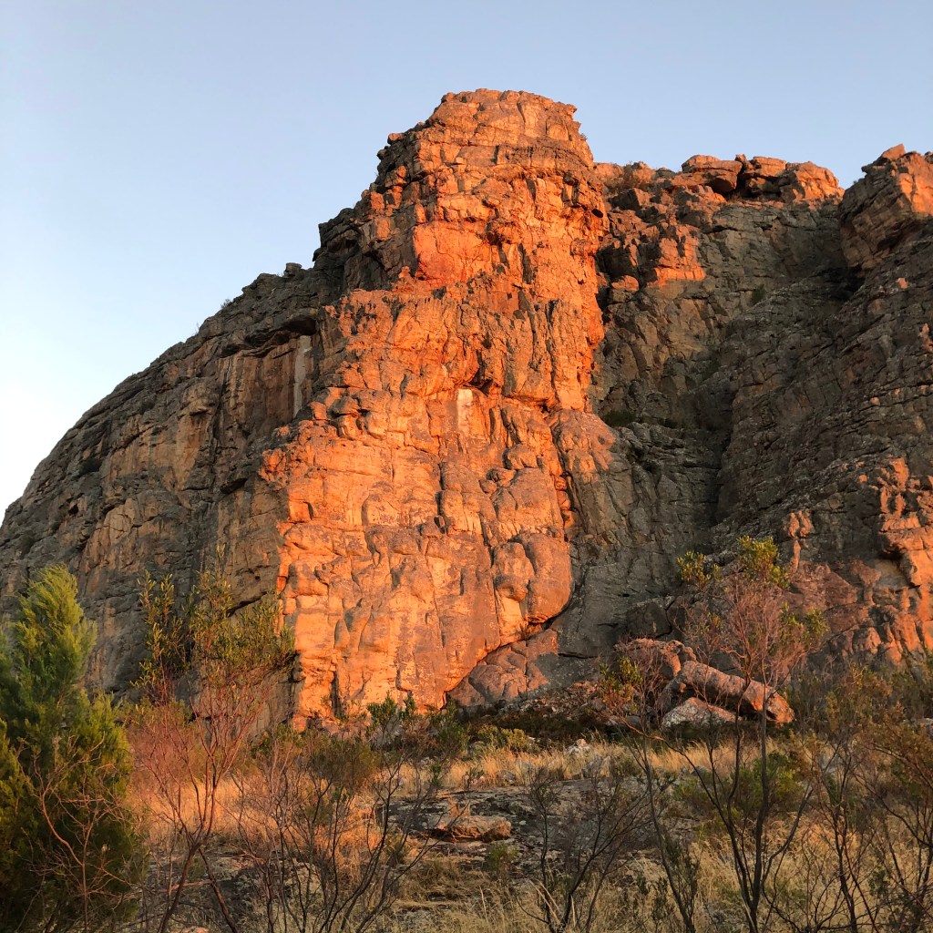 We stop for a quick pic but we are on a mission to get to the rock – which is the poor cousin to Arapiles (Dyuritte) and looks like a priest’s mitre – before the sun comes up.