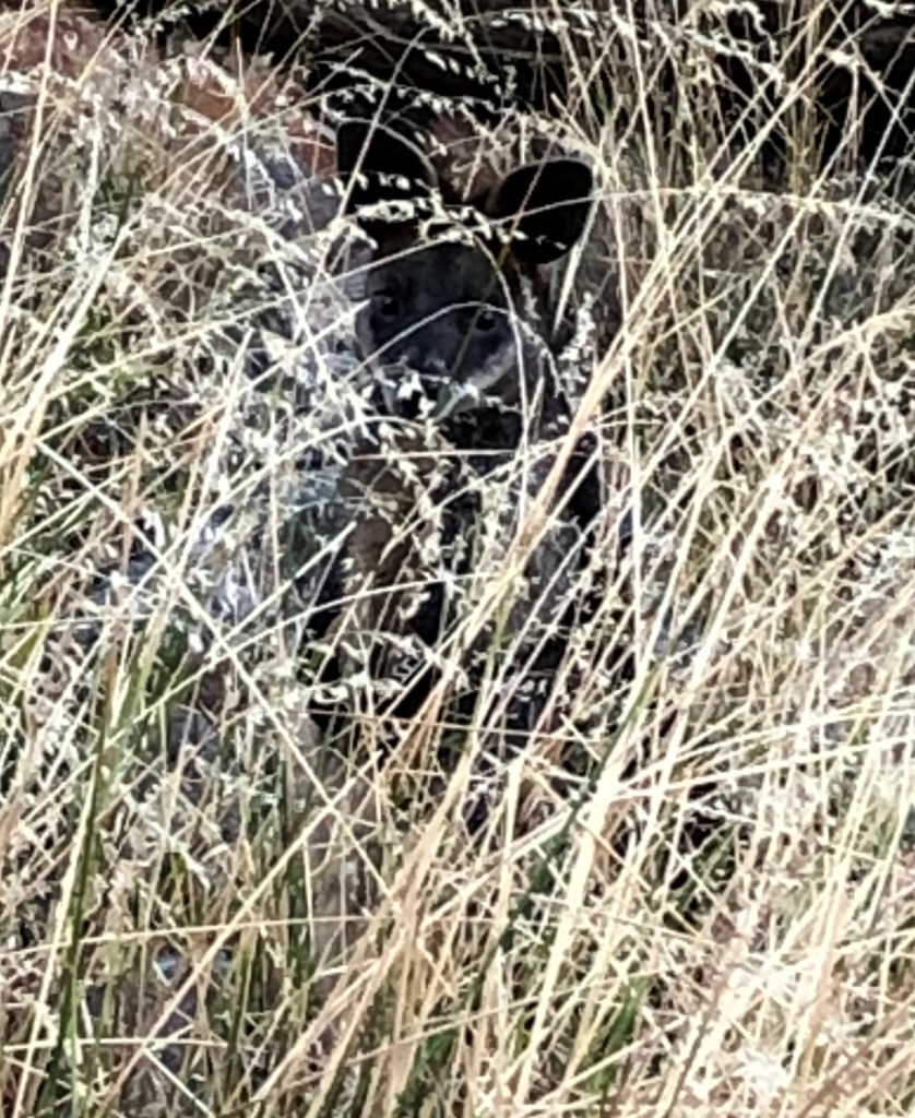 Suddenly I hear something gin the bushes and stop dead. Nothing slithering my way but there are two eyes upon me from a wallaby propping in the scrub. They are good animals to live on a rock as they kind of behave like one. We embark on what can best be described as a game of bobs and statues. I sometimes wonder if Wallabies are secretly closing their eyes like a three year old and hoping that if I can see them, they won’t see me.