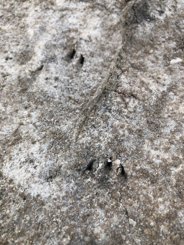 We see footprints from other visitors, human and animal but there are no animals and few birds to be seen or heard.