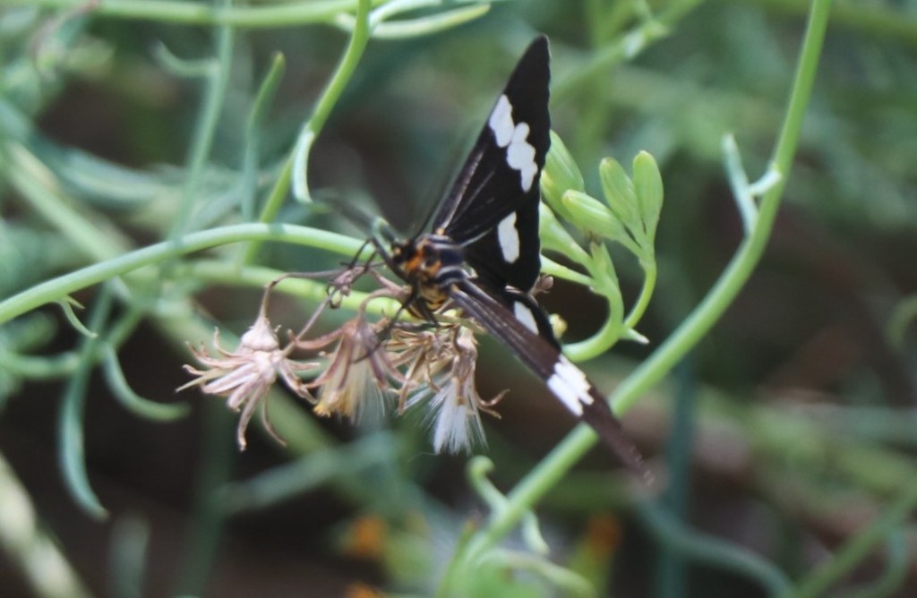 Another curious sight are the flutters of various sized butterflies. There are heaps of tiny white ones but also some beautiful black ones with white tips.