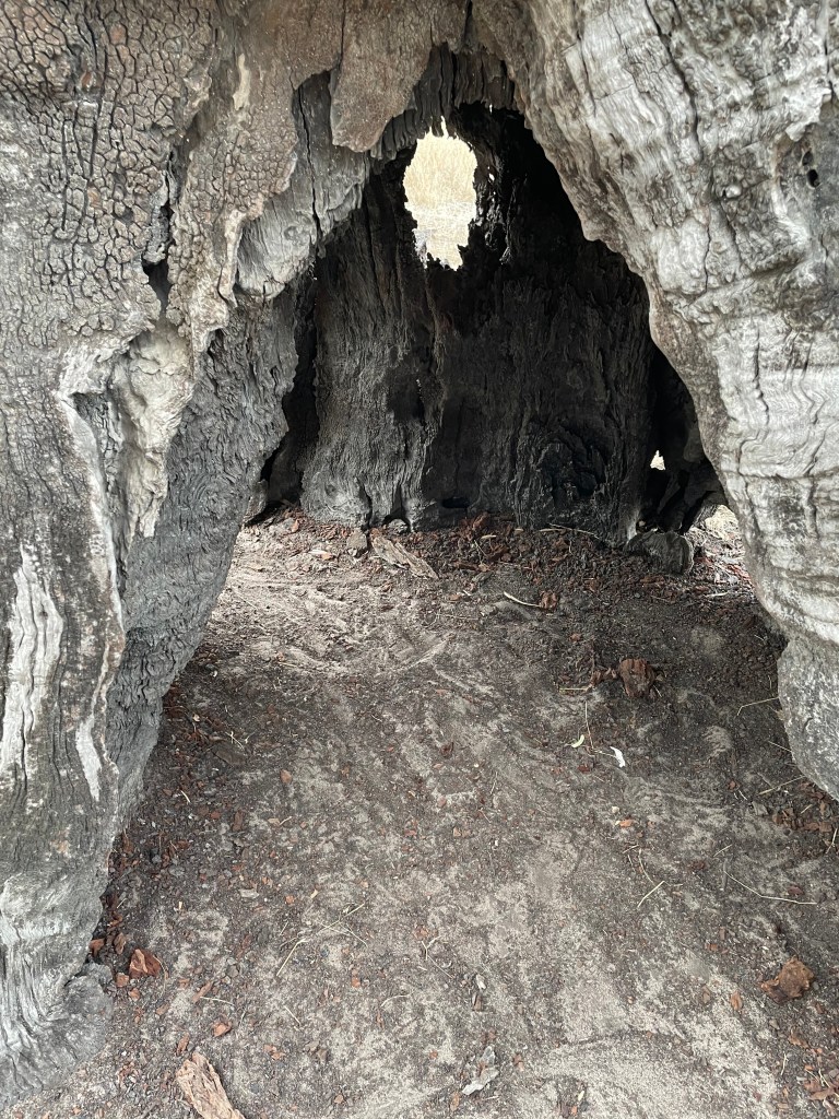 There’s a huge opening into one tall hollow tree that is almost big enough to stand in. Who might have sheltered here over the years?