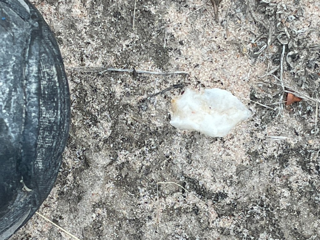 I find a few pieces of quartz in the track and some kangaroo tracks and pass a tree that burned a few years back when it was struck by lightning.
