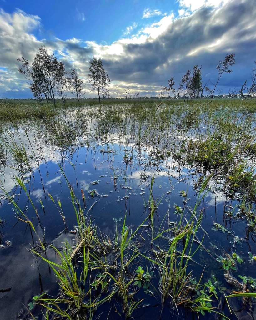 Our walk starts on the end of Rifle Butts Road under a big blue sky awash with wispy clouds. That’s probably its real claim to fame – boundary swamp does great sky.