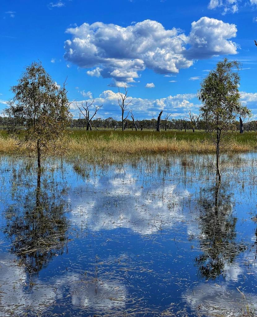 You never forget big Wimmera rains. Frogs started singing overnight and are soon joined by birds, dragon flies and mosquitoes.