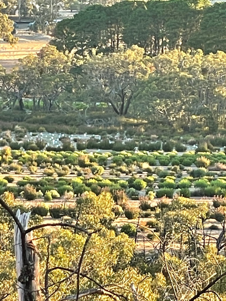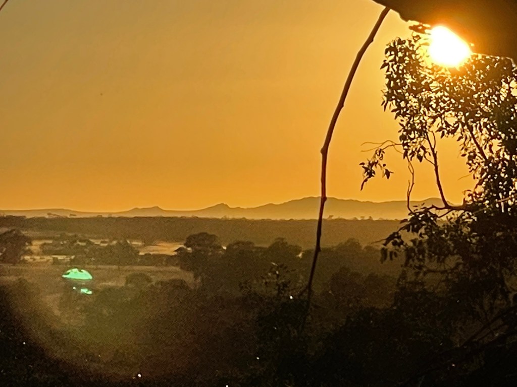 The sun is blinding but also lights up the neighbouring native plant farm and the sweeping plains beyond.