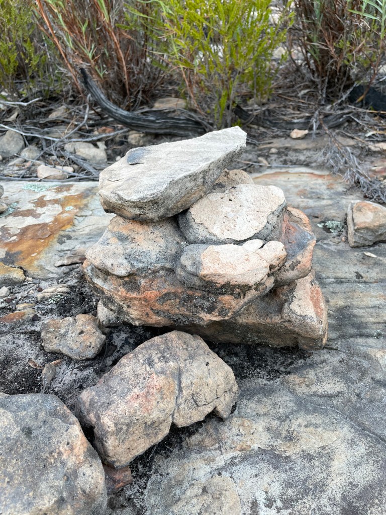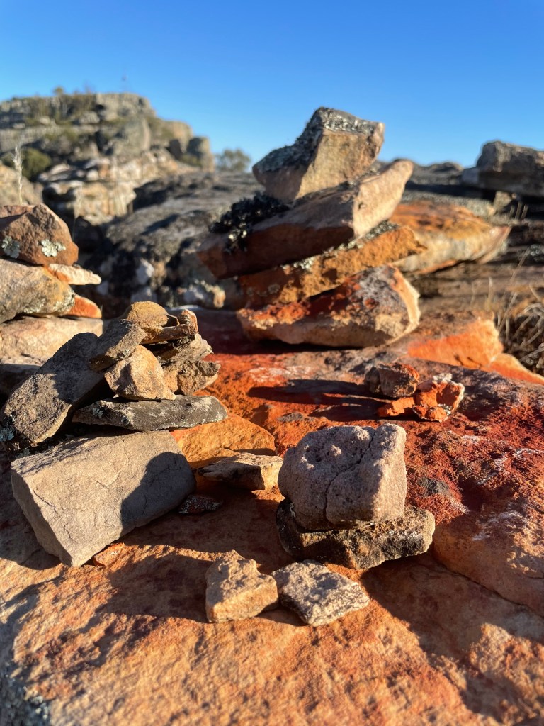 # After our visit I discover in the Gariwerd management plan that removal of rocks is illegal so please – if you visit Mt Talbot – don’t make any more of these cairns and don’t disturb the rocks.