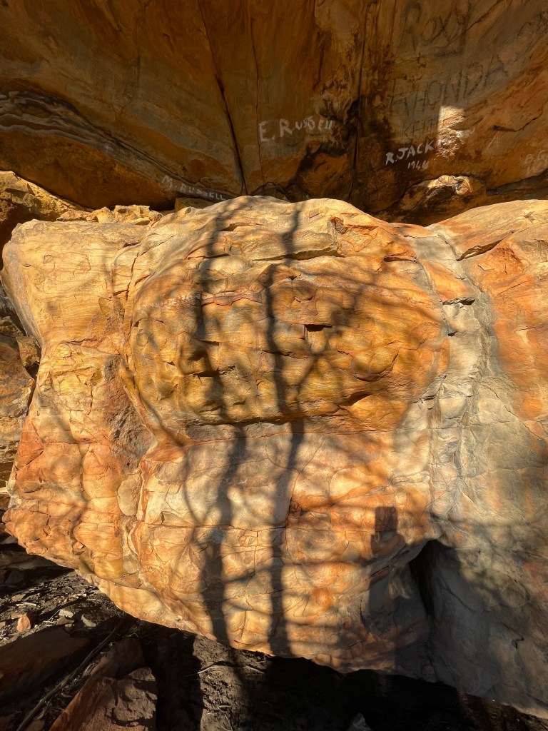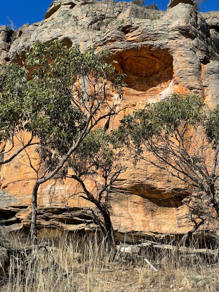 We also spot a natural rock verandah, which would provide great protection from westerly winds and excellent views north and east. There is also a whole new perspective on Mt Arapiles.