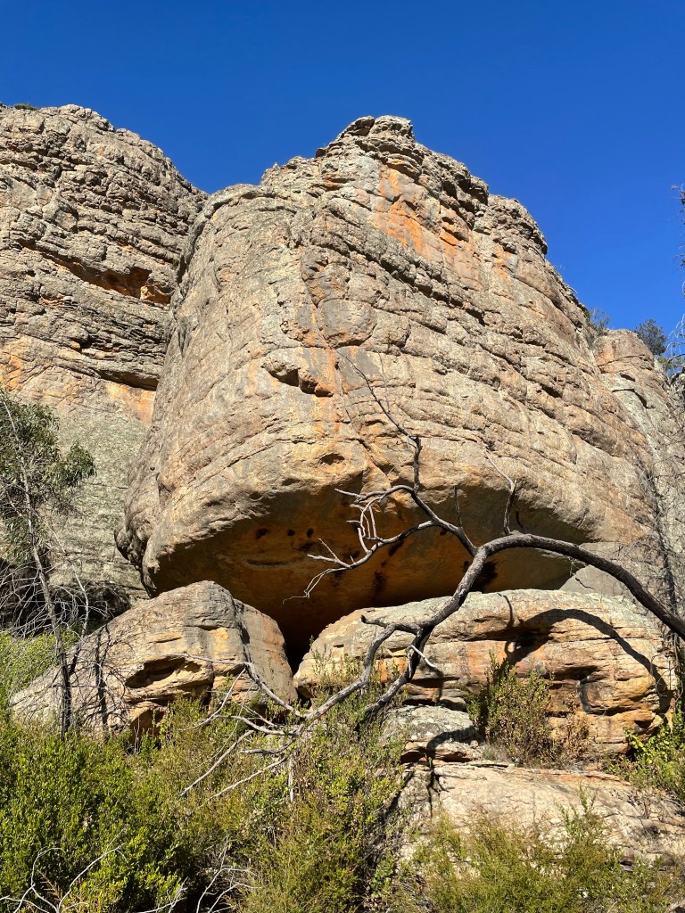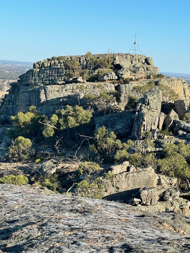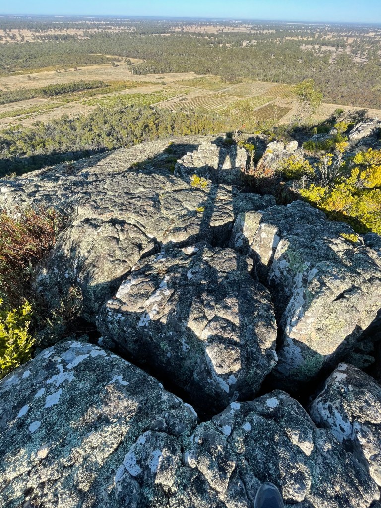 So – note to self – ‘when you can see Mt Arapiles from under a rocky shelf, turn around, look for a Cairn and head up the path beyond it’.