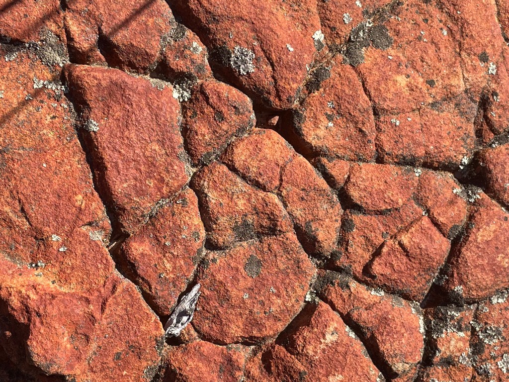 I see one red coloured stone on the ground that looks like it has veins – similar to the bed of the salty pink lake near Dimboola.