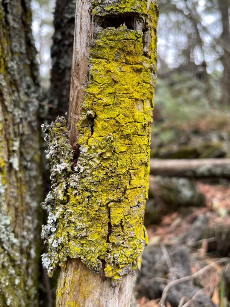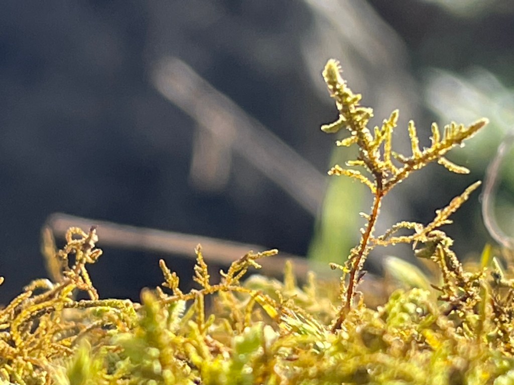 Then everything changes as I reach an unburnt patch. Amazing mosses, fluoro lichen, blood red sap and thick bracken that almost hides the path.
