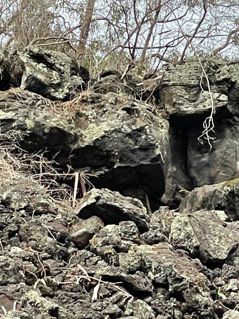 Of big walls can’t stop the fire which has torched the trees and undergrowth, exposing the full extent of this rocky this landscape including some wierd “faces” watching from the wall.