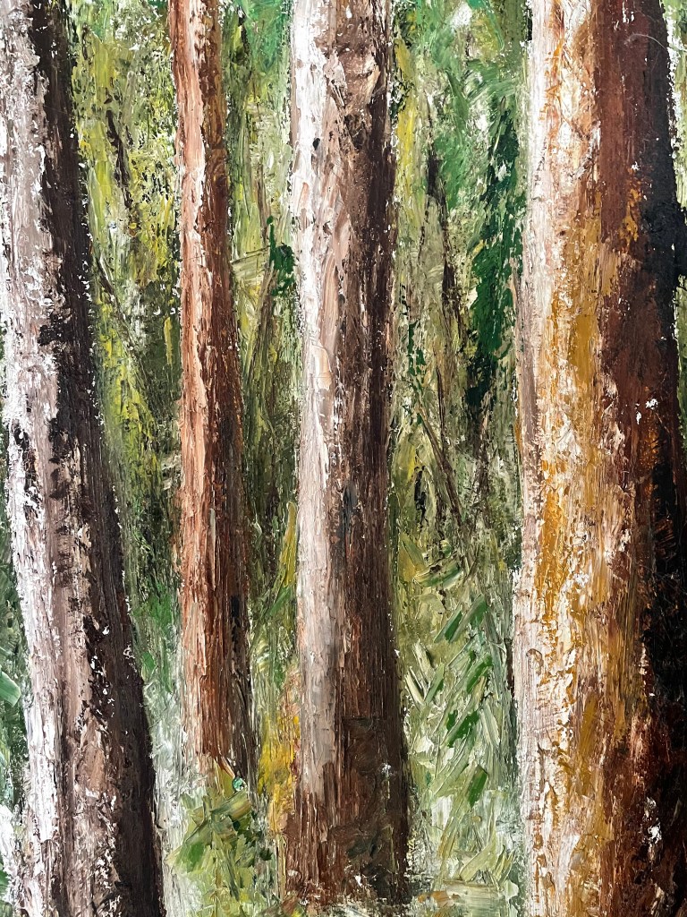 I think of the painting I did here in the early 1980s when the bush was so alive – lush and green. Today it looks dis-shevelled – stripped, shivering and waiting for its blanket of leaves to return.