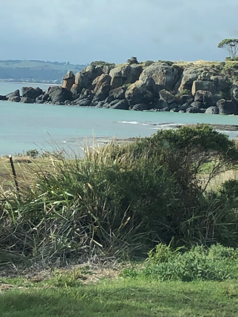 At one point something moves in the grass. Not a hop or a slither – something else. I am wondering if it might be a quoll or bandicoot, which are said to live in Hobart bush. It seems pretty amazing when we think how both species have been devastated by foxes, cats and people in Victoria.