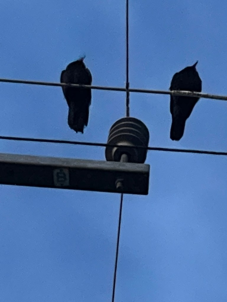 I head west through waking streets where magpies are now discussing issues of the day overhead on a power pole.