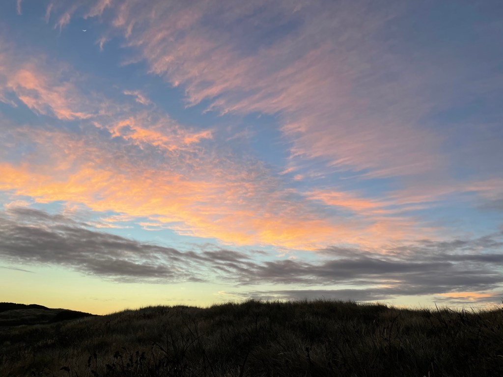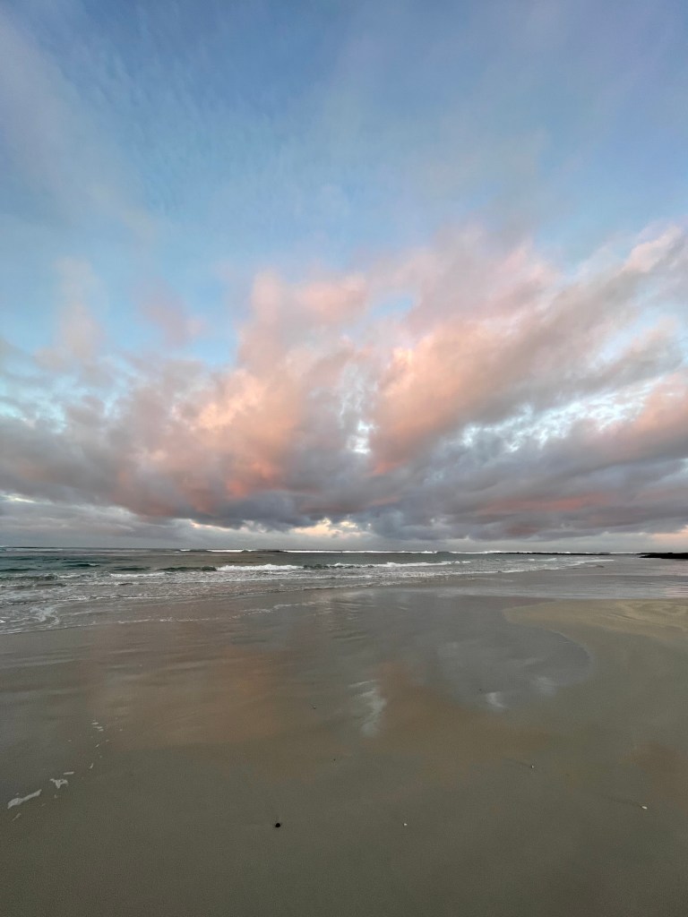 Clouds are taking on shades of pink and blue and I am looking forward a pretty awesome sunrise when the she pops over the dunes to the east.