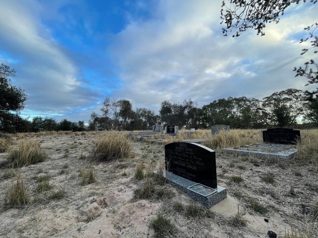 What a place to ‘rest’. The cemetery ‘garden’ features lemon-coloured banksias growing randomly right across the site. Resident caretakers are a community of noisy, happy birds which only add to the charm.