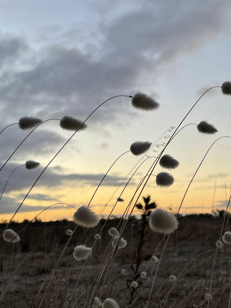 There are piles of shells and some delicate pussy tail weeds and the sky takes on shades of lemon, dusky pink and grey at different shades and intervals.