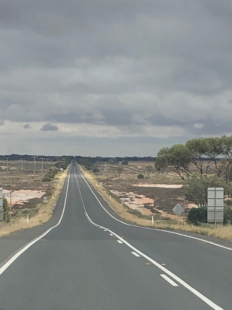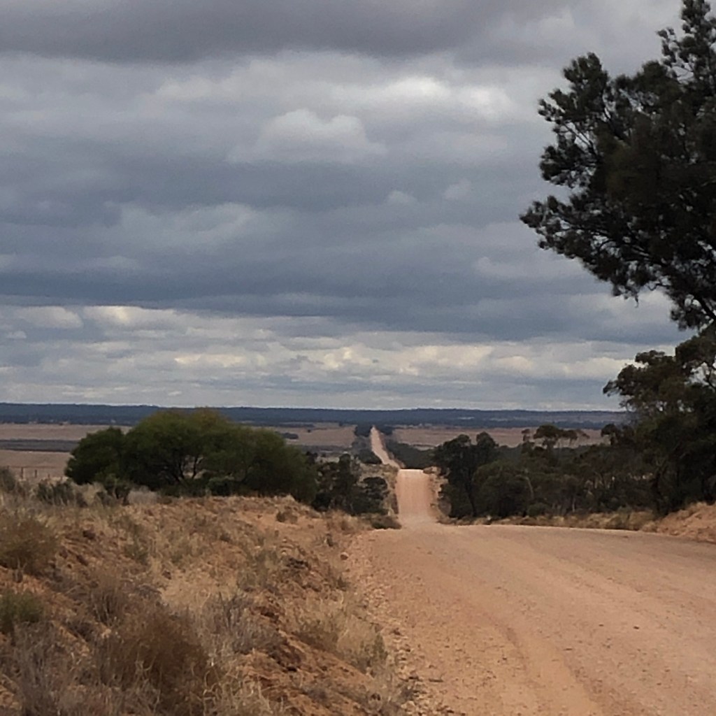 Along the Pink Lake Road, you come to a hill that really shows how far you are from anywhere. Some would find it soul destroying to look so far and see only paddocks but for others this provokes a feeling of ultimate freedom.
