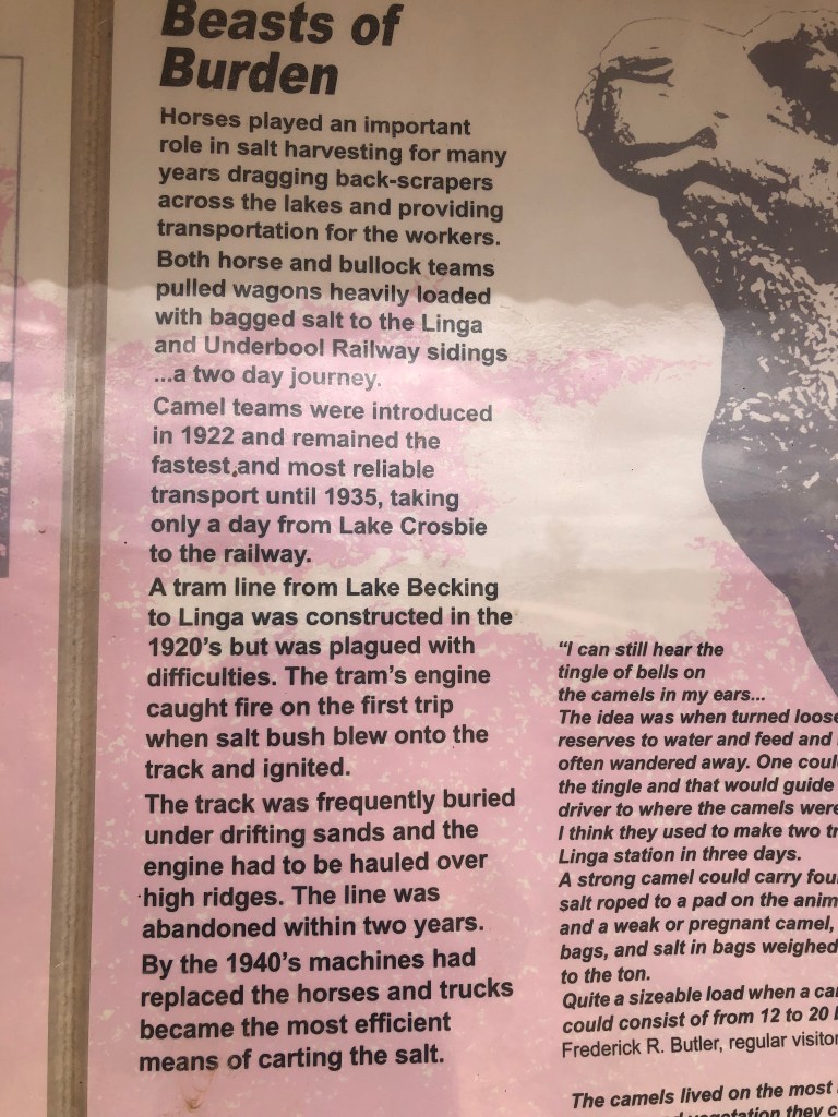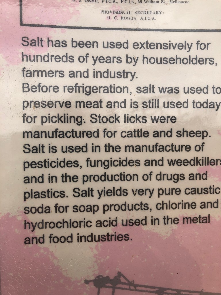 You have to remember salt was big business back in the day. It was vital for preserving meat, which was even more important in soaring Mallee temperatures.