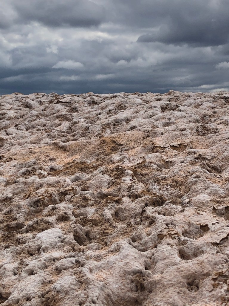 We don’t spot any wildlife but one long abandoned salt pile reminds me of a rough lizard hide another another looks like the sleeping goanna.