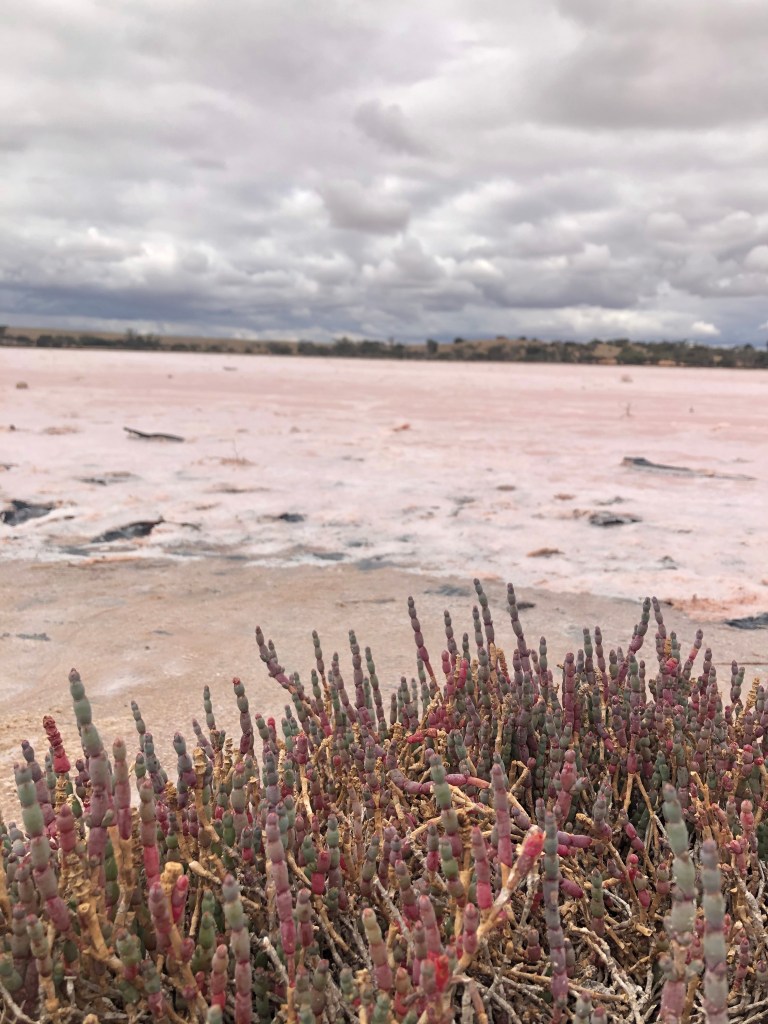 The salt seems to sit in waves and, just like pink lake at Dimboola, the lakes are home to salt tolerant succulents that mirror the shades of the salt.