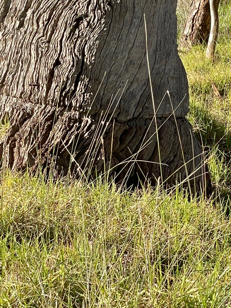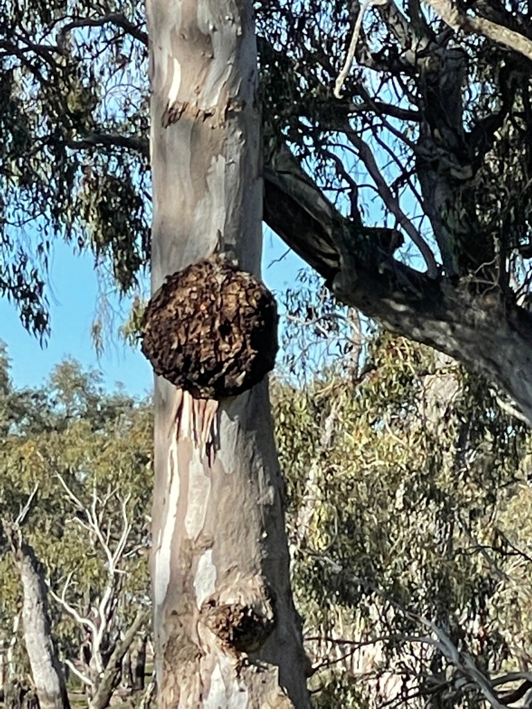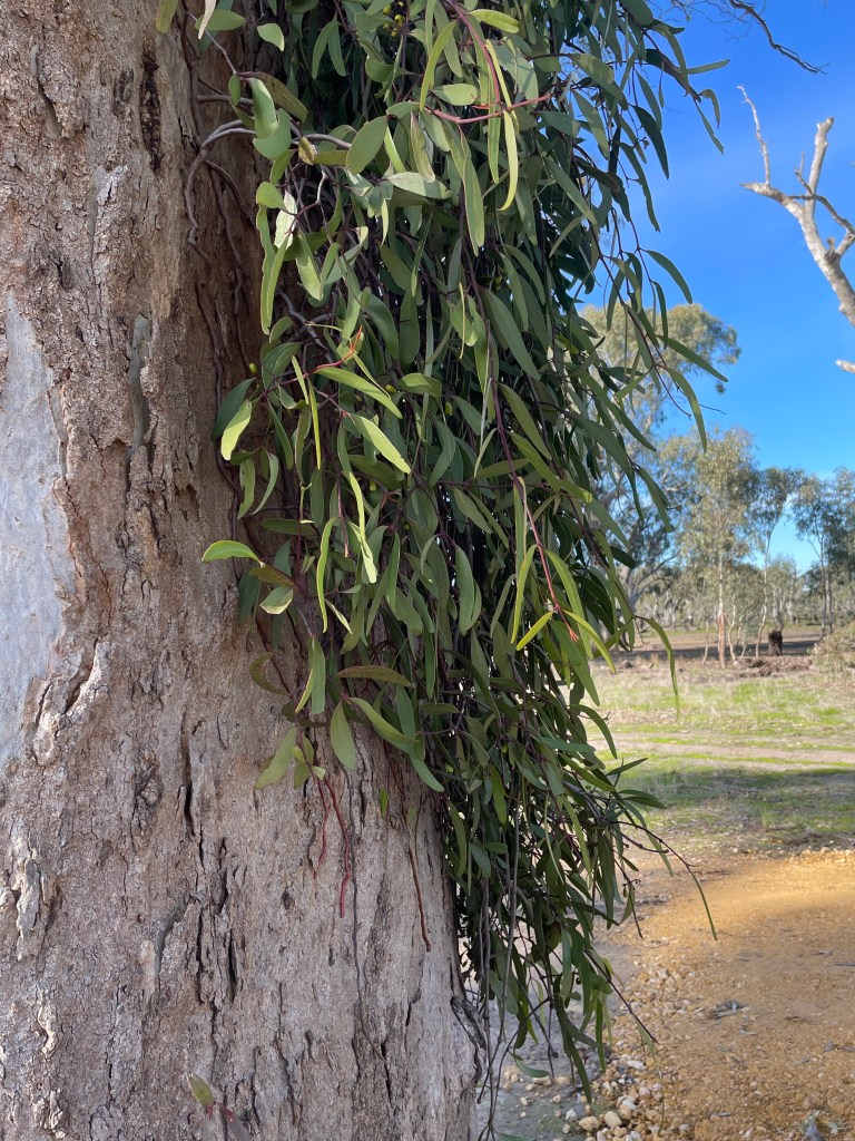 Away from the swamp, I notice one tree which seems to have been ringbarked many years ago and others that look healthy and strong. One has a giant burl and another appears to have mistletoe growing like unruly hair out of one side.