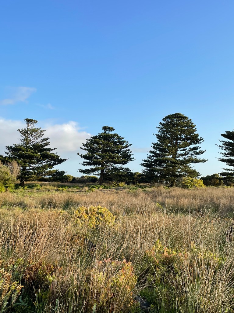 While the house is long gone the Norfolk Island pines Hugh planted remain.