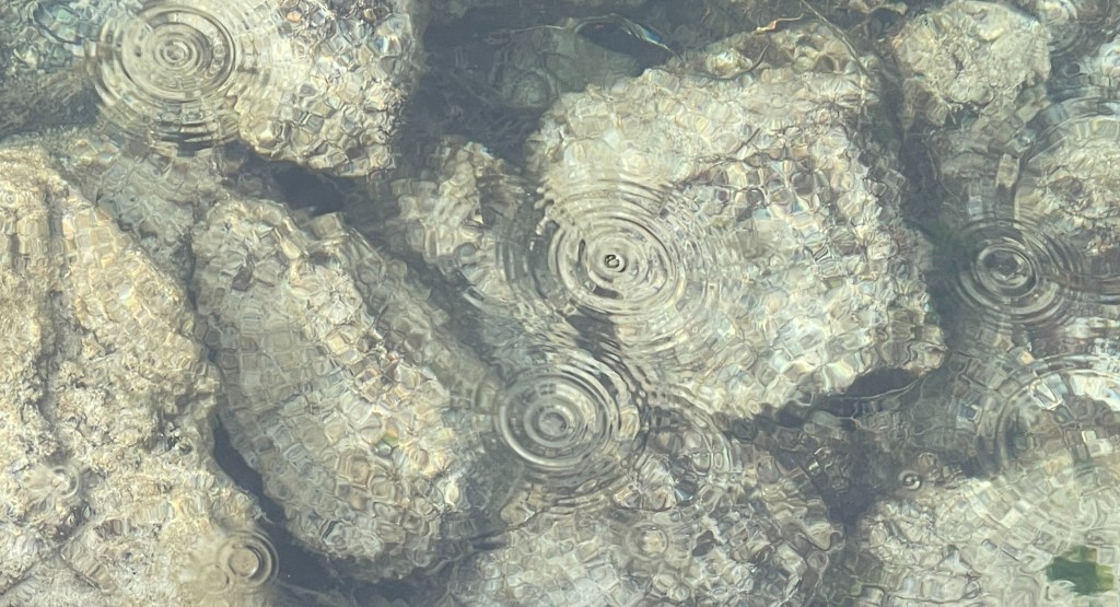 The water from The passage, to the west, passes beneath as we cross. There are many things to see in and near the clear water.