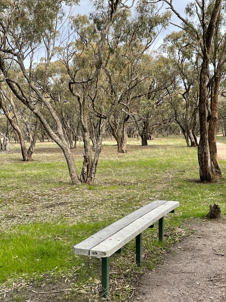 A seat on this home stretch provides a great spot to sit and take in this quieter end of the park. I wonder who has walked before me, especially the people of the Wotjobaluk Nations who have lived on this landscape for 1000s of years.
