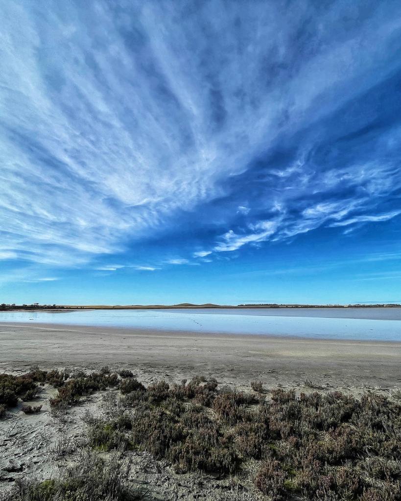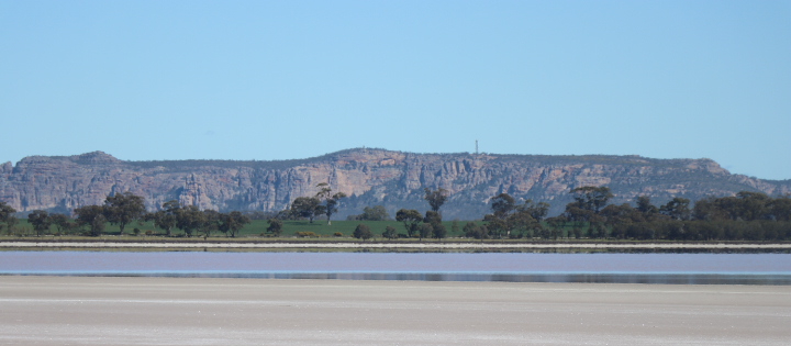 0pen eyes take in the bright colours and stark, vast lake-scape, with a backdrop of Mount Arapiles – Dyuritte and green spring crops.