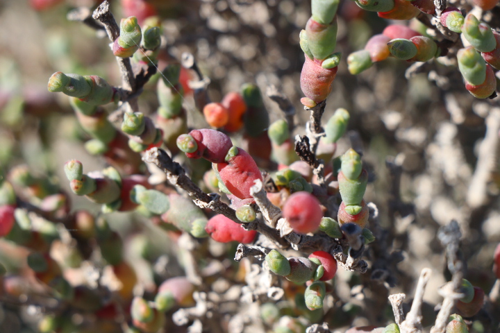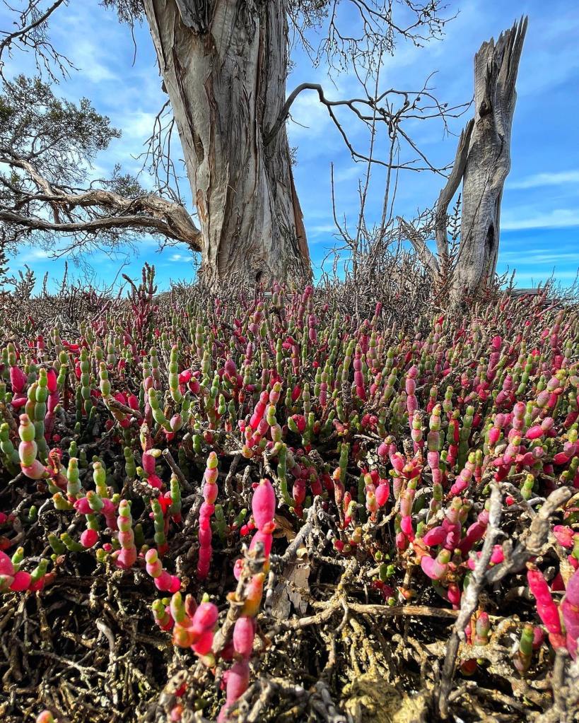At a distance the plants look like dirty pink weeds but take a closer look and they are exquisite. I think they are glass beadworts – which we saw at Pink Lakes and Oliver – and they really do look like vertical freestanding strings of beads.