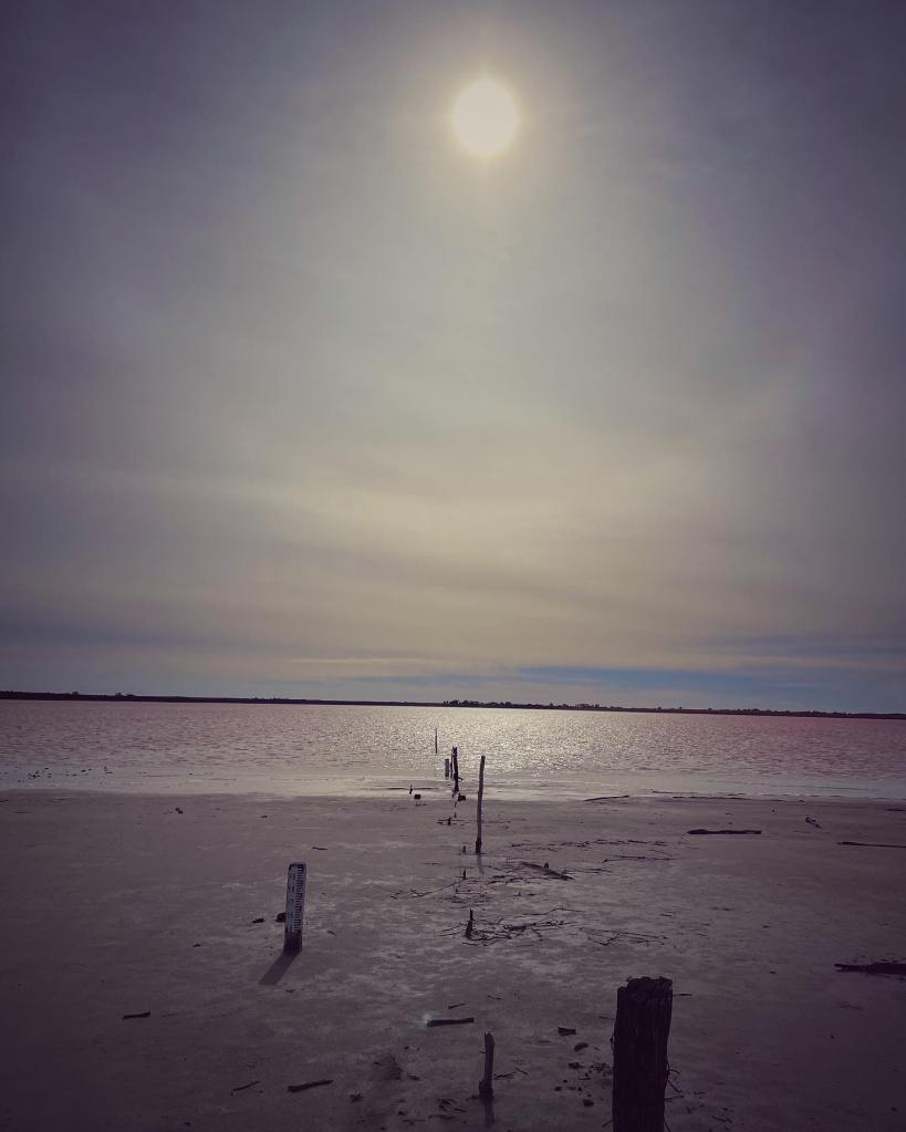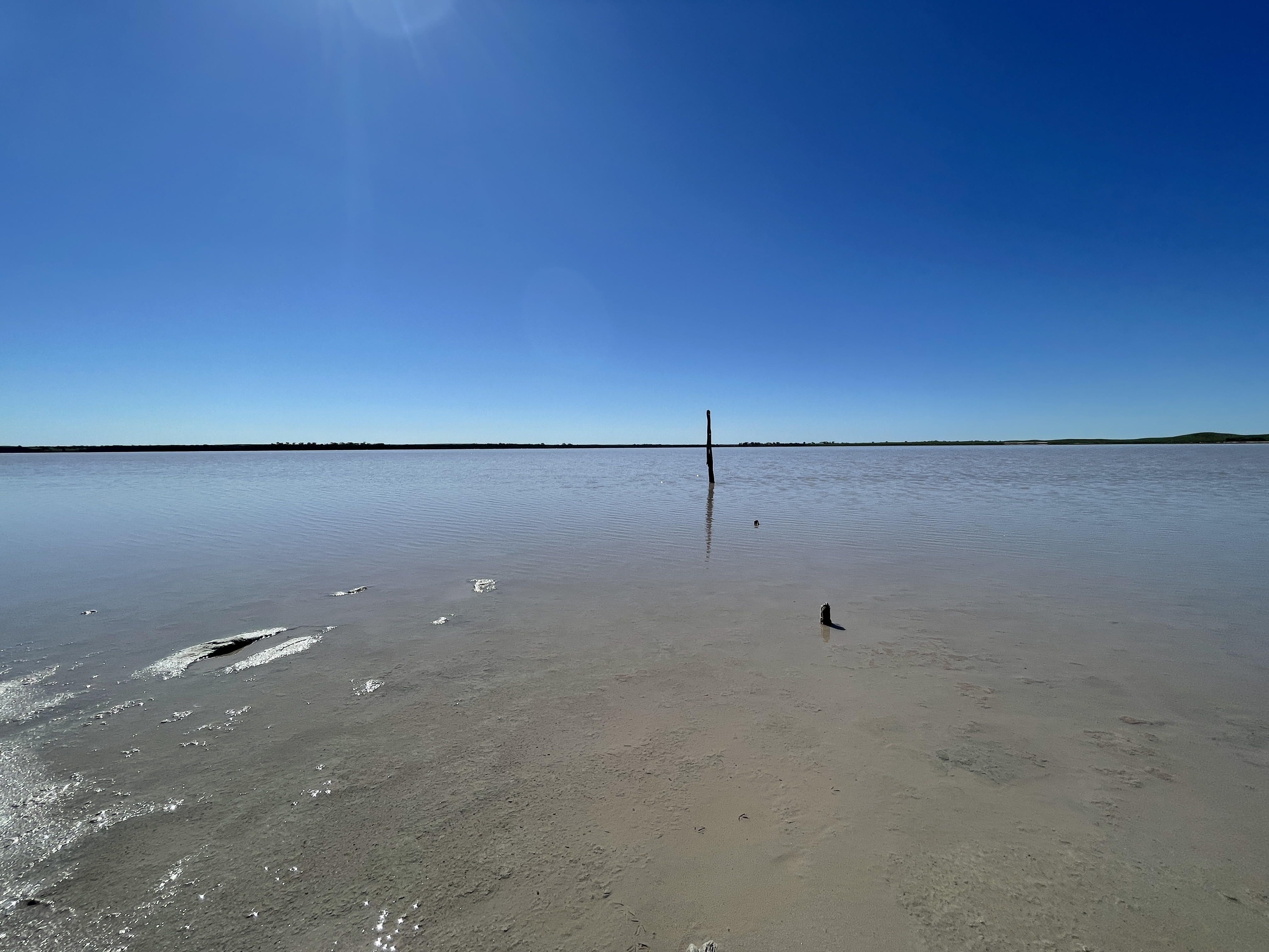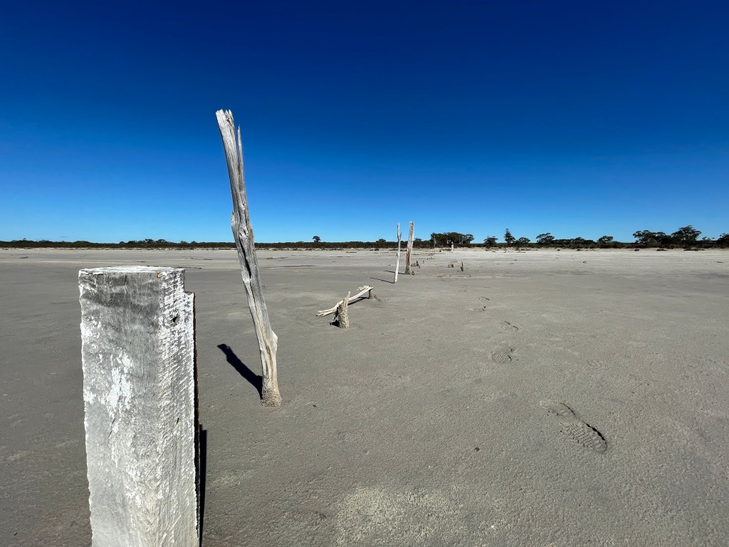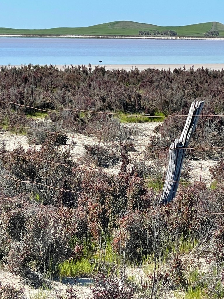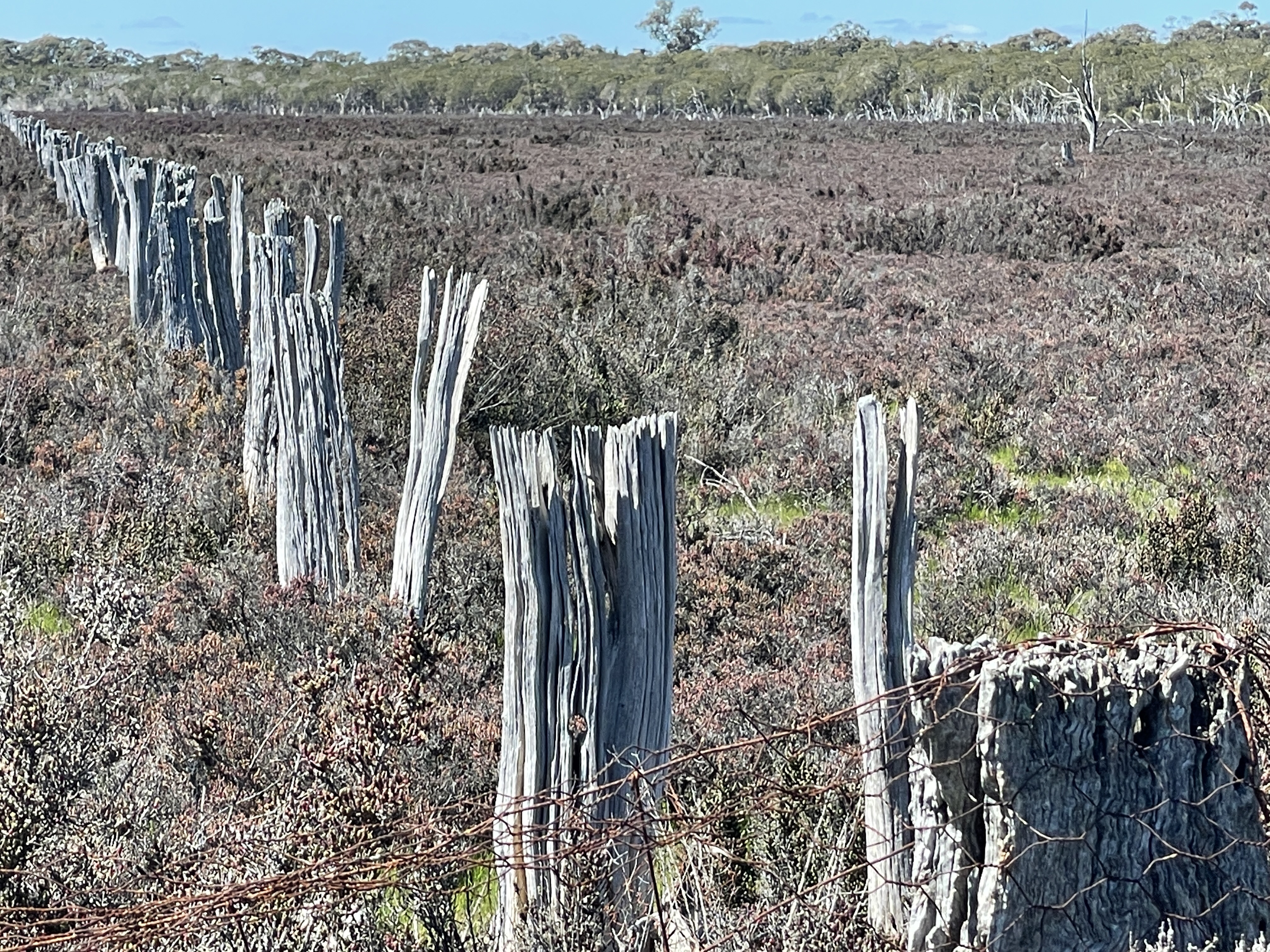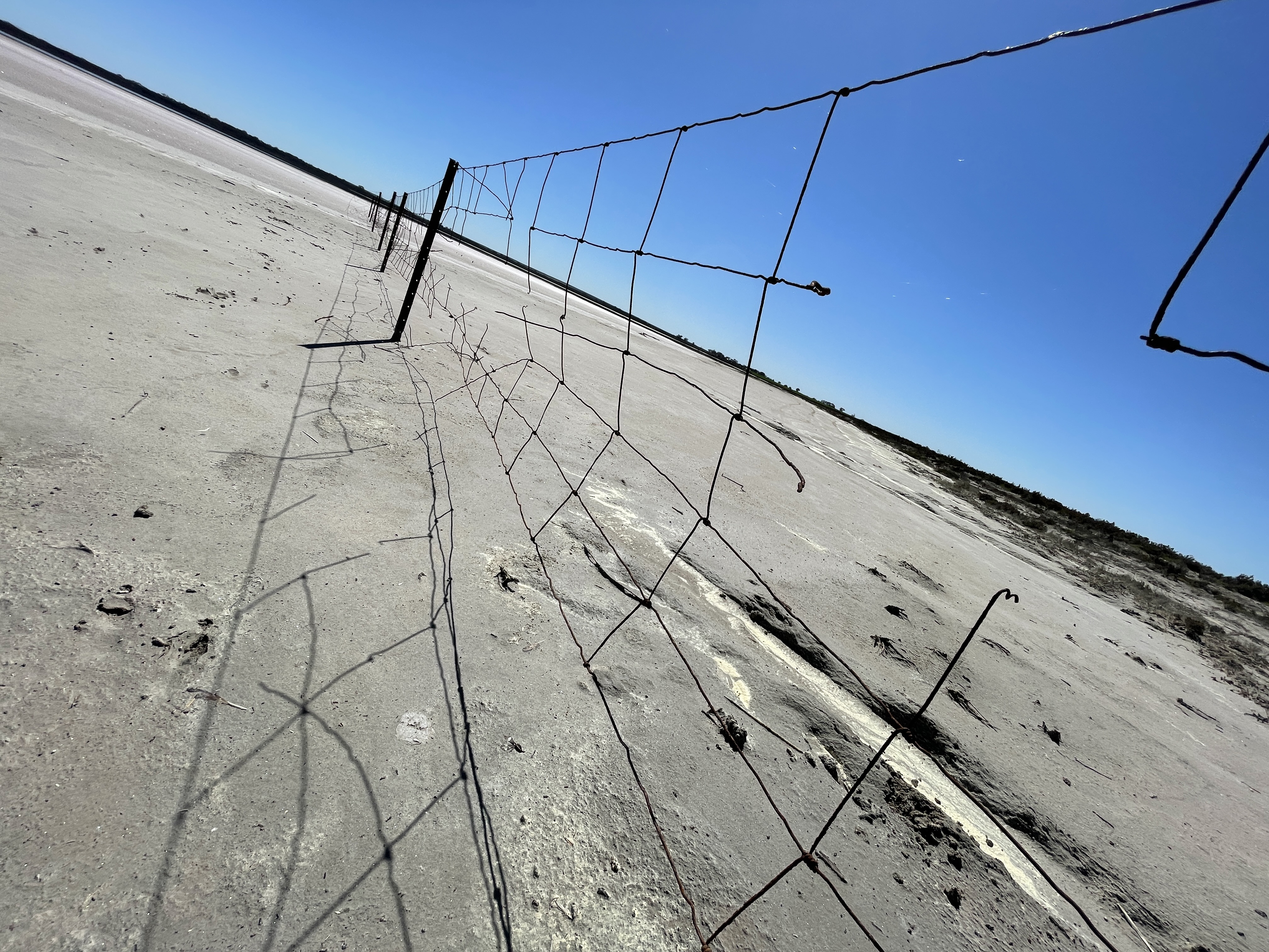 This is clay country so don’t attempt to drive if there has been even a hint of rain. The straight grey tracks lead to the water’s edge and are flanked by a fencline of wrinkled wooden posts. These posts are old but appear to have been preserved by the salt – a change from the hungry white ants that attack most other unprotected timber in the Wimmera.