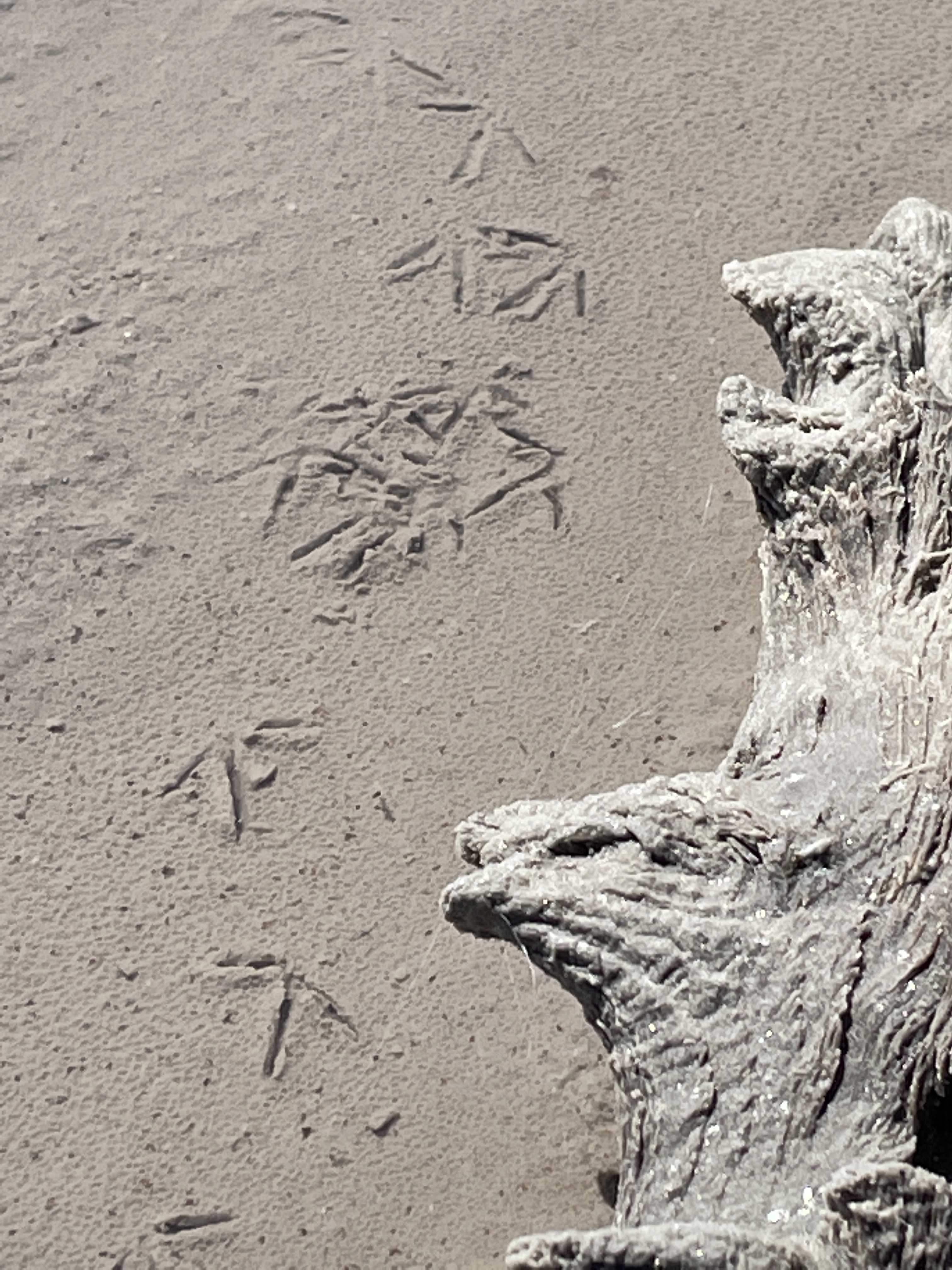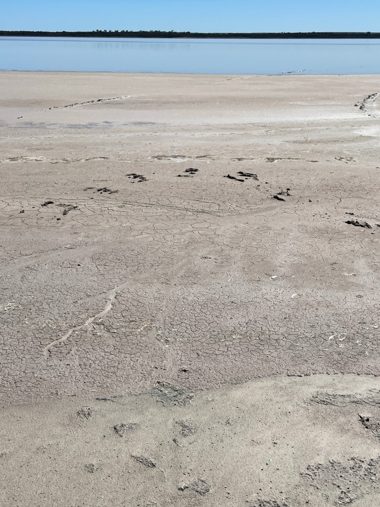 I do see some bird tracks in one spot and watch where a kangaroo raced towards the lake only to do a quick u-turn in the mud!
