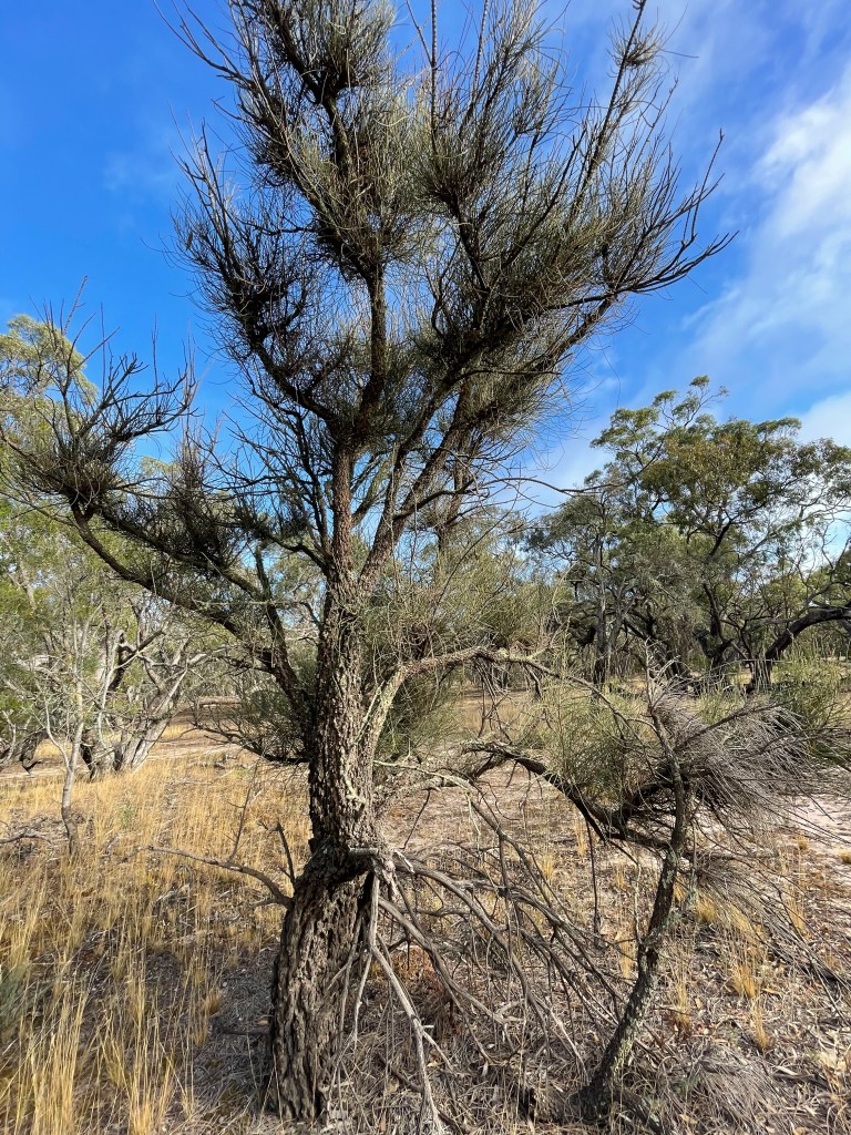 I start my walk on a track through a paddock of black box next to the lake which is part of a bike path linking the lake to Birchip.