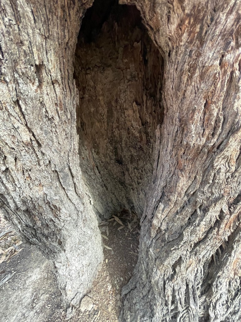 This hollow tree has a huge opening and is almost big enough to stand in.