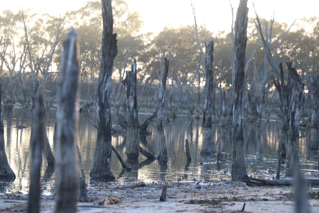 From the ground the place seems like a standard mix of river, salt bush the odd red gum. But satellite images show marvellous marbling in white, grey and black that is long-lost riverbeds, anabranches and billabongs from an ancient river bed many kilometres wide.