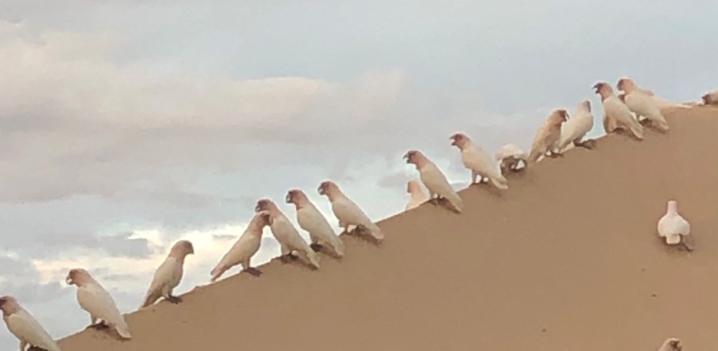 And not just the foodbowl oasis that is Mildura – although here I was spellbound by two pelicans almost tying themselves in knots as they cleaned their features and slept.